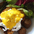A classic! Two Poached Eggs with Ham and Spinach on lightly toasted Rustic Italian Bread, topped with Hollandaise sauce!